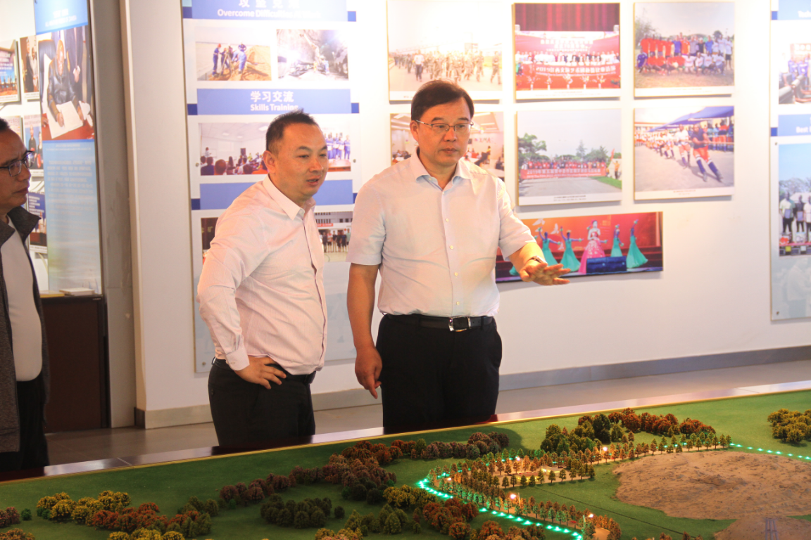 在中色卢安夏,奚正平董事长一行调研了中赞职院新老校区、矿山医院,巴鲁巴东露天矿、穆利亚希尾矿库、穆利亚希堆场、28号竖井现场,与赞方高管进行了座谈交流,并和班子领导开展了座谈会,详细听取公司发展历史、生产经营、创新创效、安全环保、履行社会责任等工作情况。