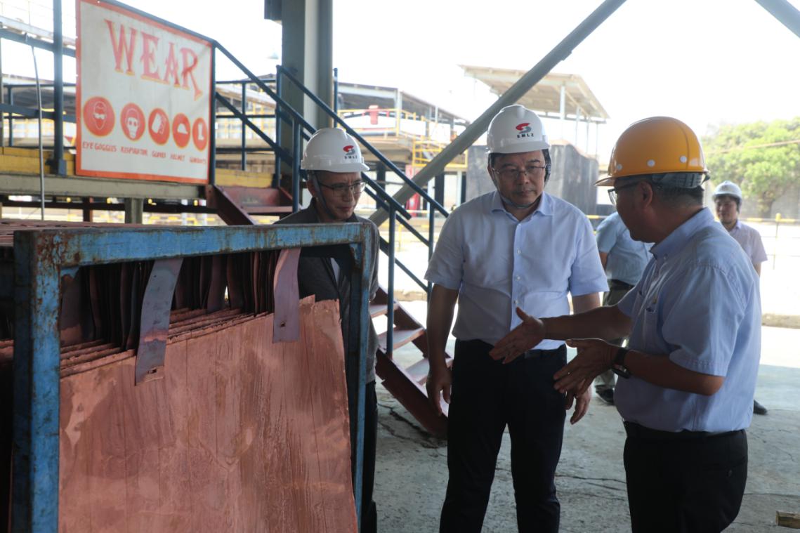 在刚波夫矿业,奚正平董事长一行来到尾矿库、主矿体、西矿体、门塞萨及湿法冶炼厂现场,查看了生产情况,详细询问了生产管理、工艺流程、技术指标等内容,与现场具体负责人就质量、安全环保、成本控制、资源开发路径进行了深入交流。