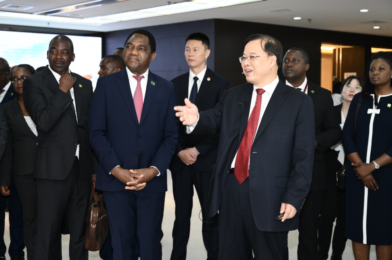 9月14日,正在中国进行国事访问的赞比亚总统希奇莱马一行到访中国有色集团,与中国有色集团董事长奚正平举行座谈,共同见证中国有色集团在赞有关项目签约,并举行中国-赞比亚投资推介活动。国务院国资委副主任苟坪、中国驻赞比亚大使杜晓晖出席活动。