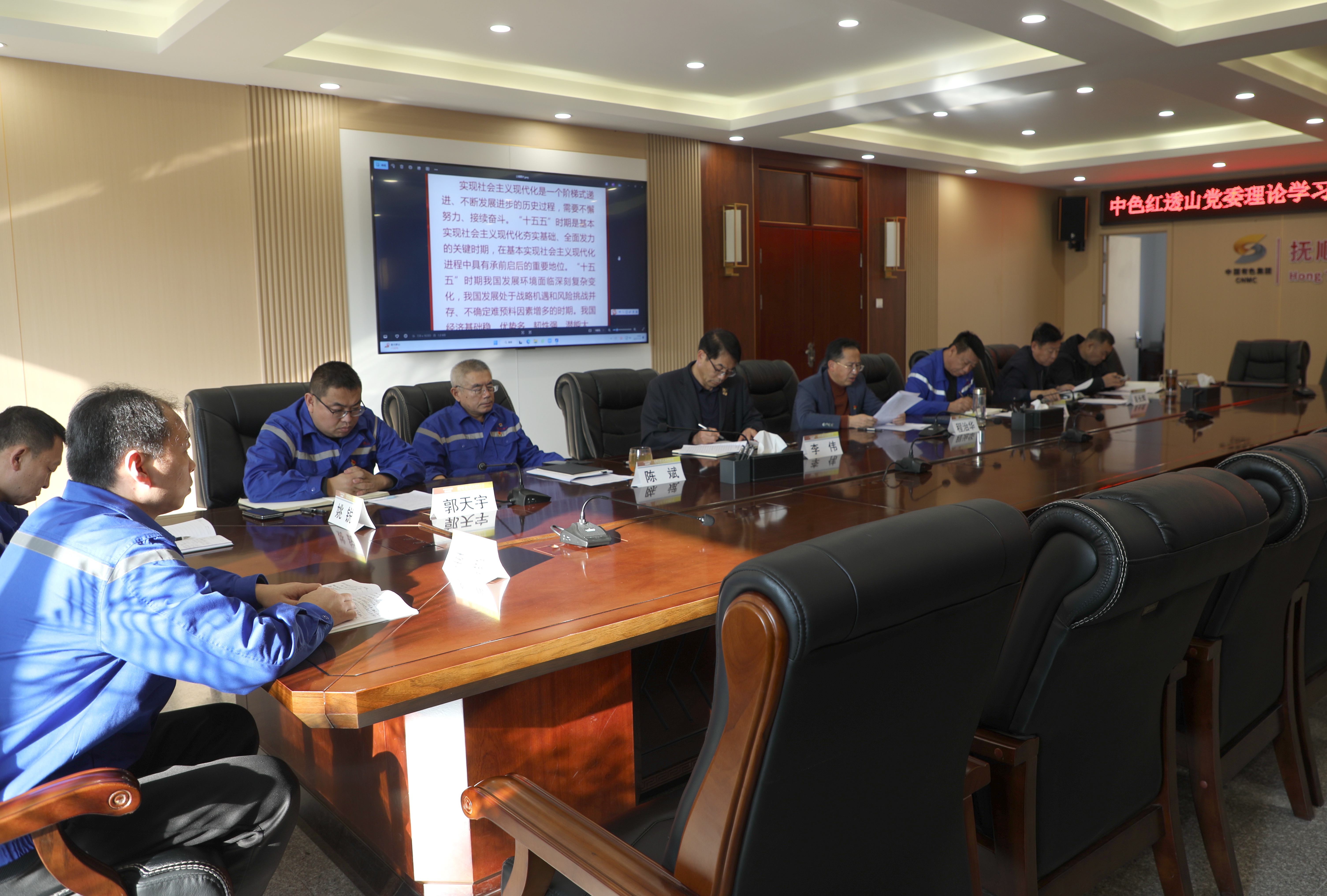 11月6日,中色红透山党委召开理论学习中心组第八期暨深入学习贯彻二十届四中全会精神读书班,专题学习党的二十届四中全会公报及中共中央办公厅、国务院办公厅印发的《整治形式主义为基层减负若干规定》,深入领会习近平总书记在听取西藏、新疆党委和政府工作汇报时的重要讲话精神、在党外人士座谈会上的重要讲话精神,系统学习习近平总书记关于全面深化改革的一系列新思想和关于铸牢中华民族共同体意识的重要论述,重温习近平总书记“11·6”“2·26”重要指示及对集团公司的三次重要批示精神。公司党委书记、董事长程治华主持会议并作总结讲话。
