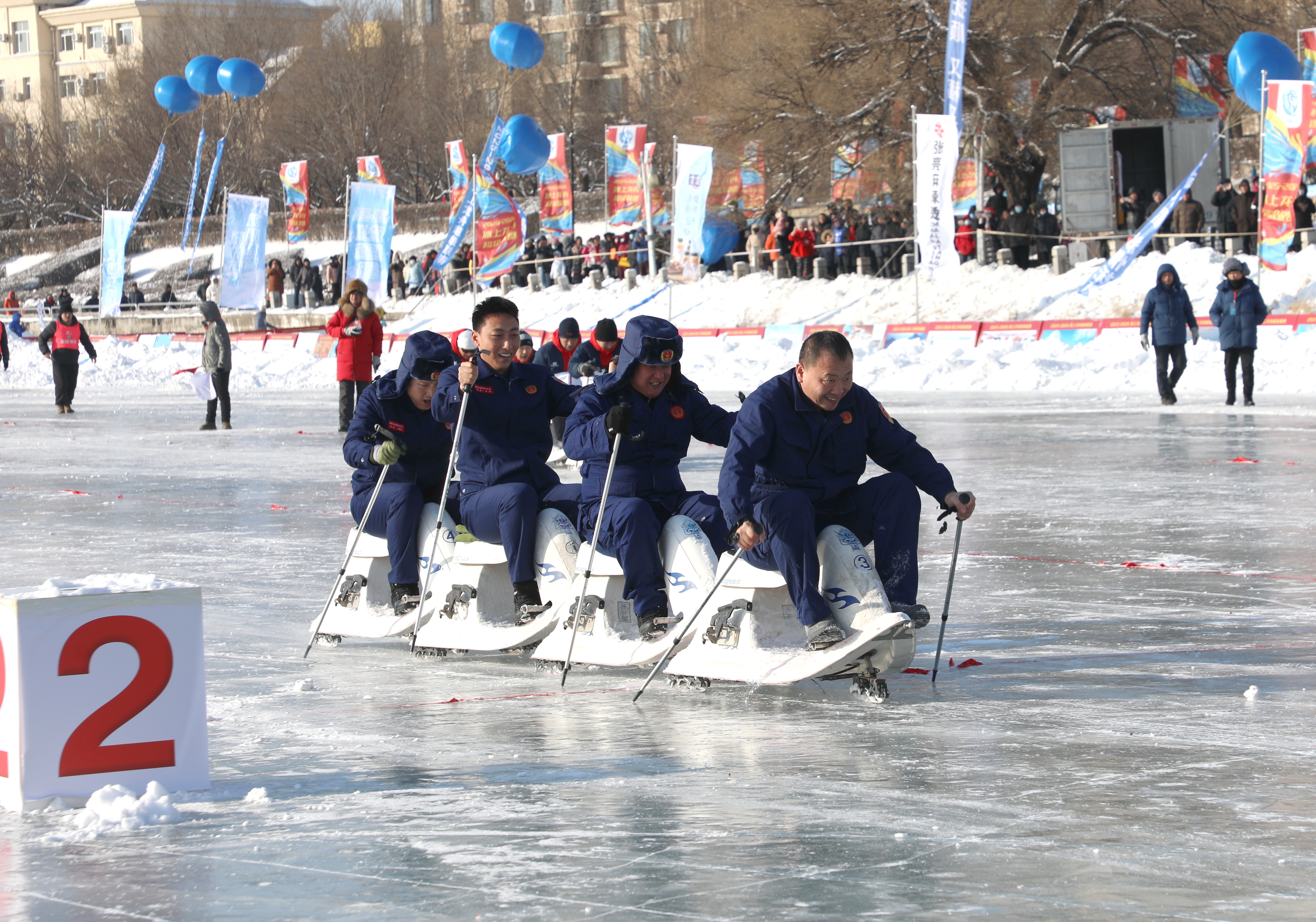 冰上龙舟作为传统龙舟与冰雪运动的创新融合,以其风驰电掣的速度感与高强度的协作要求,成为检验团队实力的终极赛场。比赛当日,抚顺赛场的冰面寒气凛冽,但队员们个个精神抖擞、斗志昂扬。随着发令枪响,队员们伴随铿锵鼓点,挥桨如飞,冰钎与冰面碰撞出激昂的“战歌”。提桨、破冰、划动,每一个动作都整齐划一、刚劲有力,龙舟如离弦之箭般在冰面飞驰,尽显红透山人敢打敢拼的硬核风采。