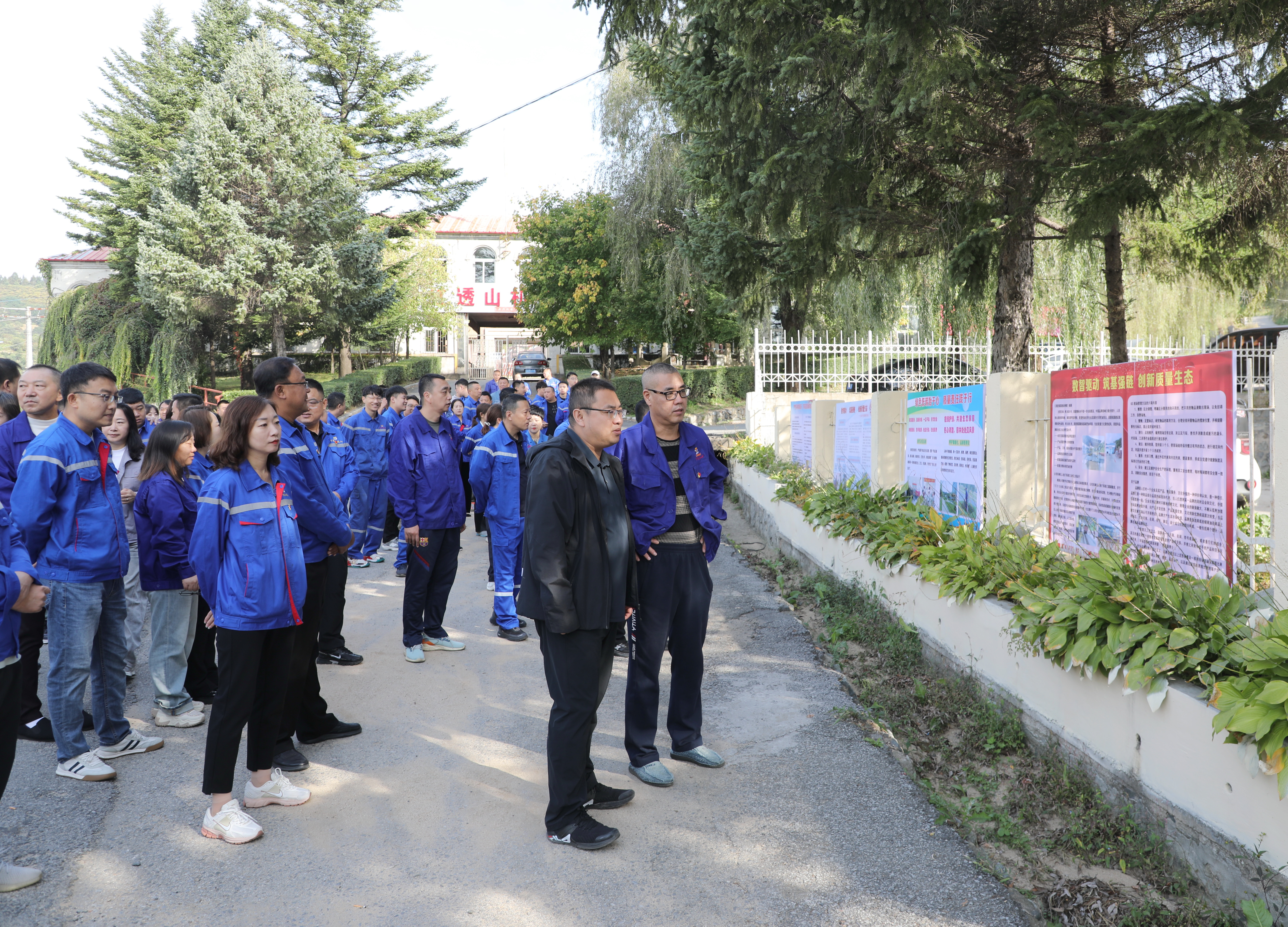 为深入贯彻党的二十大、二十届三中全会精神,牢固树立质量第一理念,中色红透山按照集团公司《关于开展 2025 年集团公司“质量月”活动的通知》要求,精心组织开展了以“数智驱动 筑基强链 创新质量生态”为主题的系列质量提升活动。活动得到公司领导及各单位、部门的高度重视与大力支持,通过悬挂宣传条幅、开展覆盖全员的质量知识竞赛答题等系列预热活动,提前营造了浓厚的质量文化氛围。 9月23日,作为“质量月”活动的重头戏,“质量月”板报展在公司老党办楼前隆重举办。公司各单位、部室领导,质量管理员及相关业务骨干共100余人到场参观,将本次质量月活动推向高潮。展出期间,公司副总经理郭天宇亲临现场,与各单位、部室的干部职工一道驻足观看展板内容,细致品评设计理念与质量成果。一块块图文并茂、主题鲜明的展板与络绎不绝的观展人流交相辉映,共同构筑起立体生动的质量文化宣传阵地。
