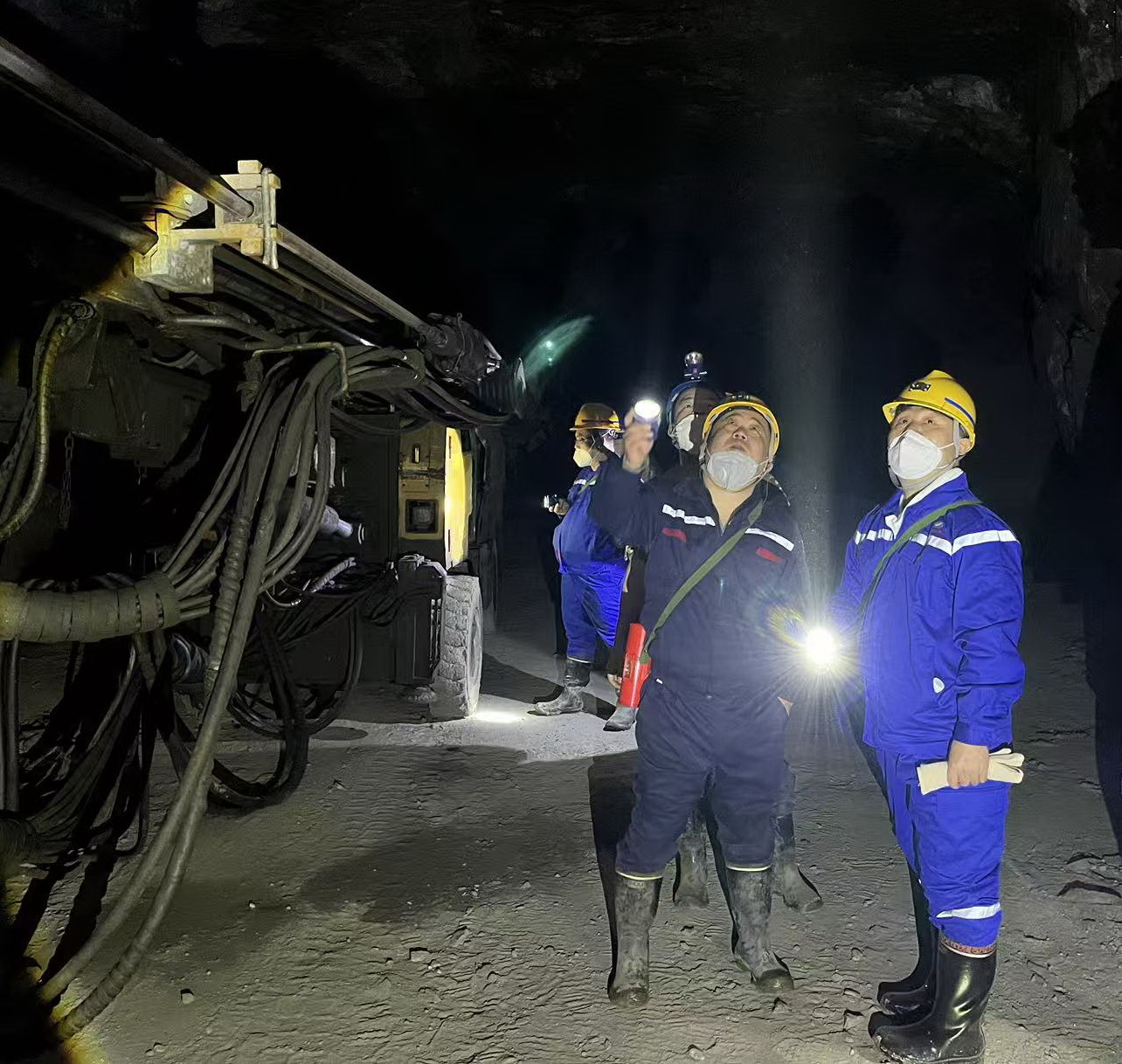 王志伟还到井下-977中段实地察看了巷道掘进进度、地质构造揭露以及取样质量等增储上产推进情况。他指出,资源增储是矿山生存发展的“生命线”工程,必须坚持“地质先行、精准勘探”原则,不放过任何一处潜在资源区块;要结合井下矿体实际情况,在确保安全生产的前提下,深入探索和科学优化采矿方法,提高采矿生产能力;要加大与地质科研院所的沟通合作,充分发挥各自优势,紧紧围绕资源增储做文章,为公司高质量可持续发展增添新动能。