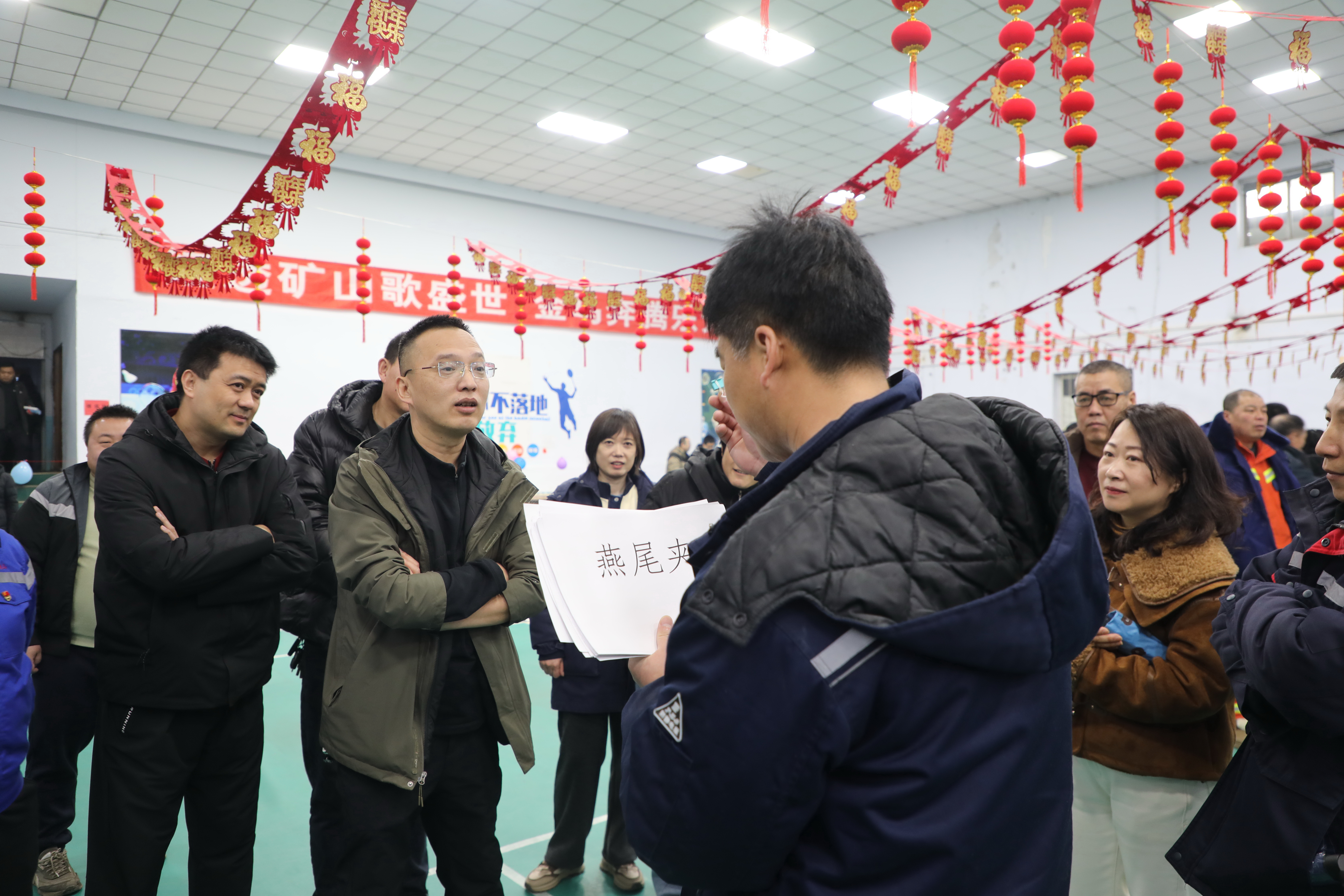 猜灯谜区域,彩笺高悬、妙趣横生,谜面涵盖传统文化、安全知识、企业文化、生活常识等内容,大家或凝神思索、或结伴探讨,在解谜闯关中共享民俗之乐;“采石过河”“你比我猜”“极速穿裤”套圈等游艺项目现场掌声、欢呼声、笑语声此起彼伏,职工们精神饱满、默契配合,尽显团结向上、奋勇争先的良好风貌。公司领导与职工一同参与游戏、交流互动,现场气氛热烈融洽,充分展现了矿山大家庭的温暖与活力。